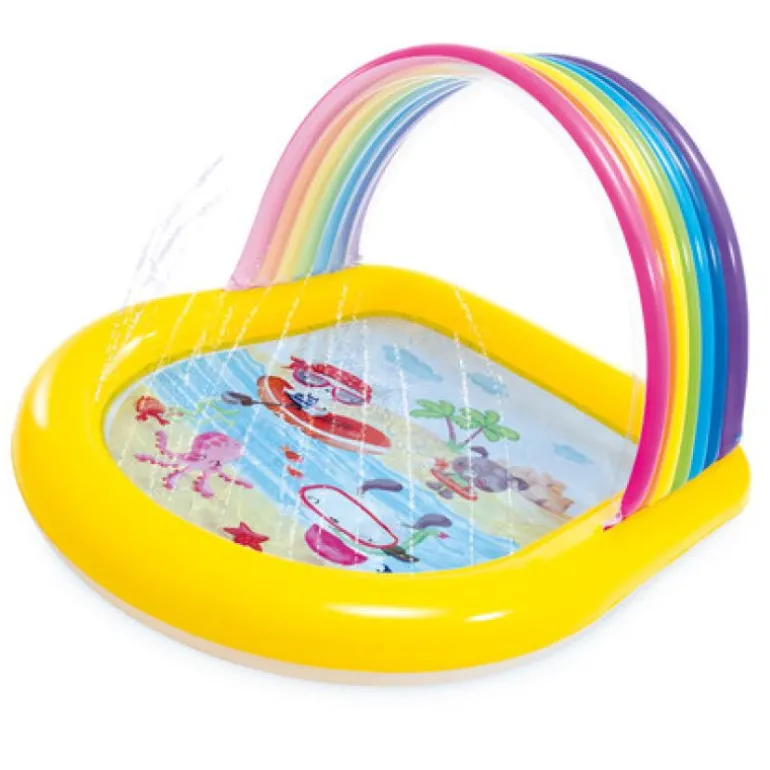 - Søtt, lite oppblåsbart regnbuebasseng for barn fra 2 år.