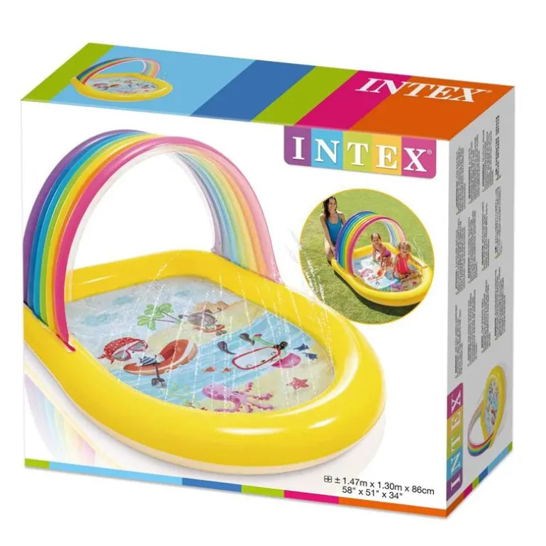 Intex Regnbue Babybasseng er designet med slitesterke materialer av høy kvalitet for å sikre langvarig glede og moro. Det er enkelt å sette opp og ta ned, og inkluderer et praktisk reparasjonssett for å fikse eventuelle små hull eller skader.