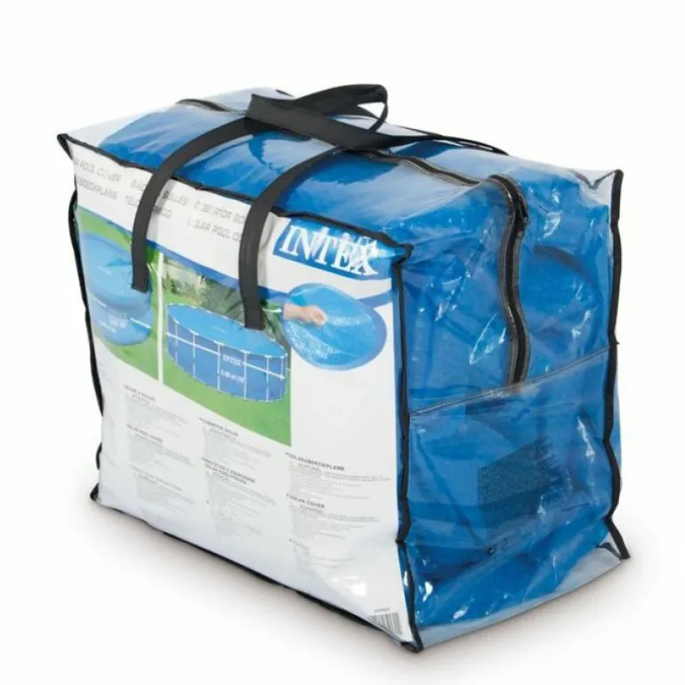 Dette bassengtrekket 28015 fra Intex legges direkte på vannoverflaten, og festes i kantene på bassenget, og kan holde bassengvannet varmt, avhengig av mengden direkte sollys. Med PE luftkamre over hele overflaten, har det gode varmebevarende egenskaper. Samtidig bidrar det til å redusere bruken av kjemikalier, samt fordampning av vann. Det kan enkelt festes eller fjernes fra bassenget. En bæreveske er også inkludert i leveransen. Hjelper og med å holde vannet rent for blader o.l.
