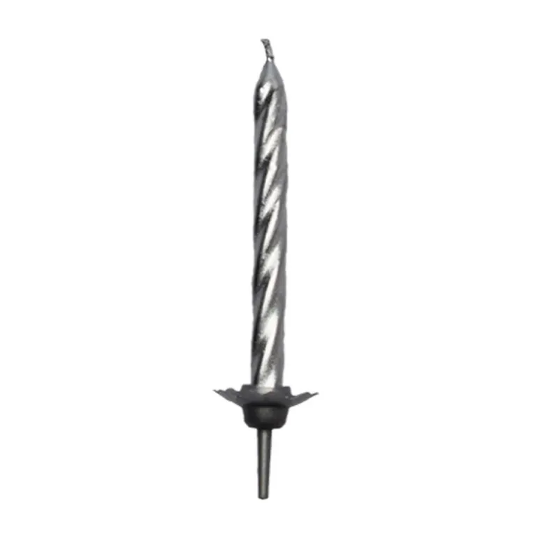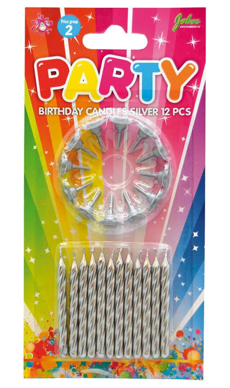 Flotte kakelys til dekorering av kaker og iskaker. Dette settet inneholder 12 sølvfargede kakelys med holdere.
