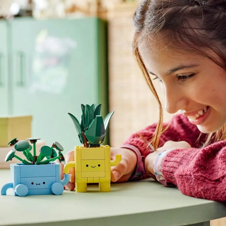 Lyst til å lokke fram smilet hos andre? Bygg en flott blomsterdekorasjon med settet LEGO Botanicals Glade planter. Du kan glede deg til en gøyal byggeprosess, hvor du bygger en liten dracaena i en gul potte og en liten pilea-plante i en blå potte. Etterpå kan du pynte opp på soverommet med de to LEGO plantene.