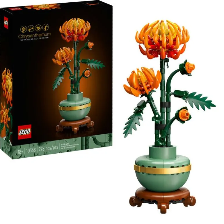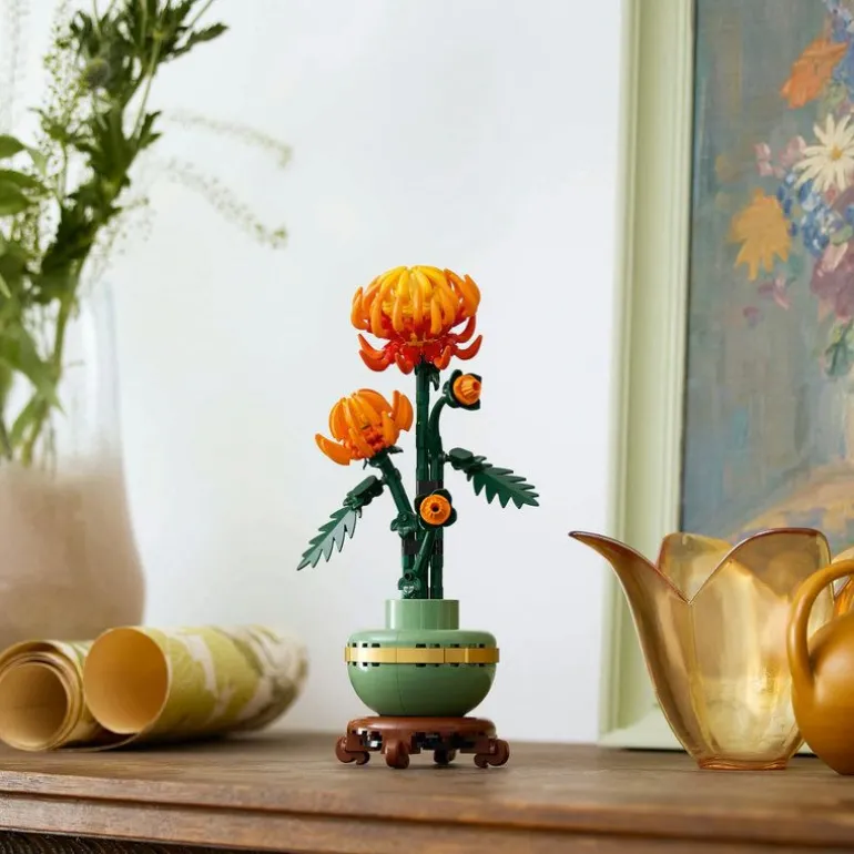 - LEGO Icons Krysantemum er et byggbart blomstersett for voksne