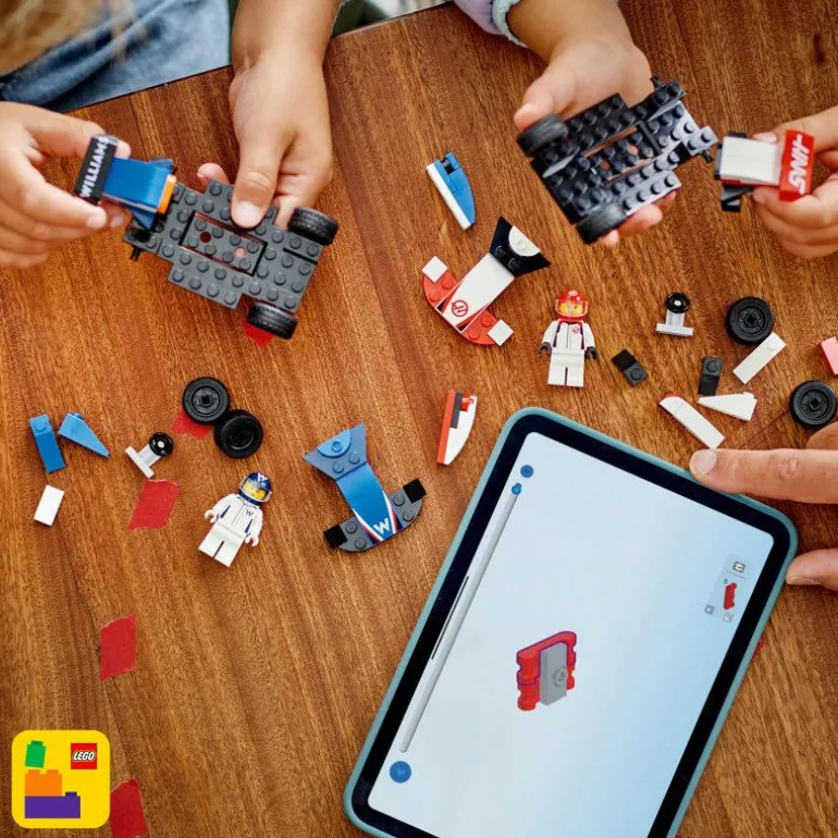 - Plasser minifigurer av sjåførene fra Williams og Haas i bilene for å arrangere gøyale billøp