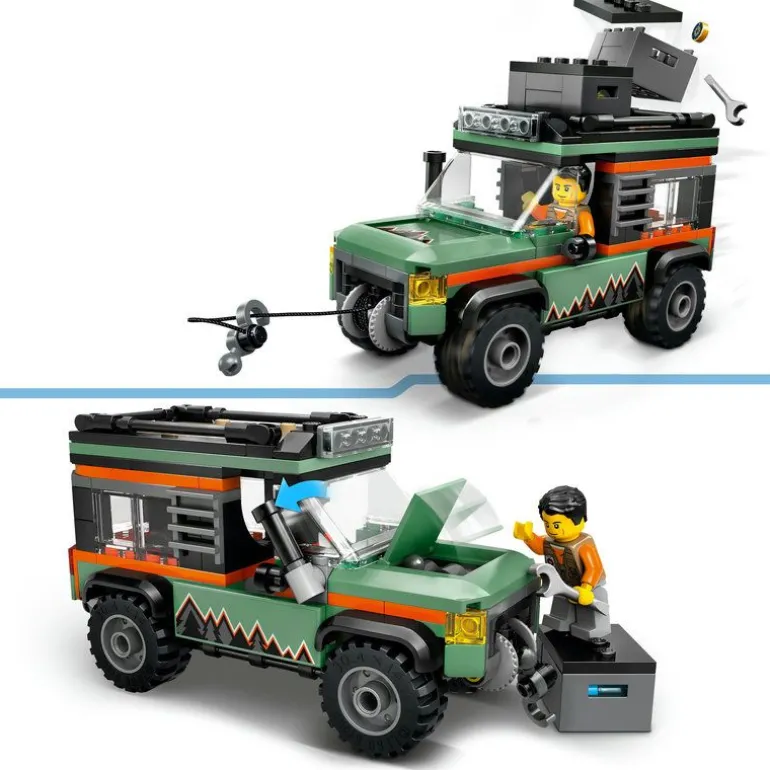 Legg ut på episke eventyr med settet LEGO City Firehjulsdrevet terrengbil! Kjør i bratte skråninger, og trekk kjøretøyet opp av grøfter og ut av farlige situasjoner med vinsjen. Finn verktøy og utstyr i takboksene, og vend kjøretøysnorkelen for å åpne panseret og reparere motoren. Dette robuste kjøretøyet er konstruert for krevende ekspedisjoner i villmarken!