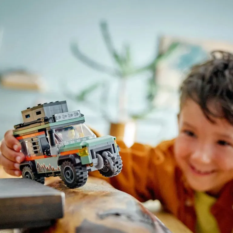 - Inkluderer et firehjulsdrevet terrengkjøretøy og en minifigur av en eventyrer for gøyal rollelek