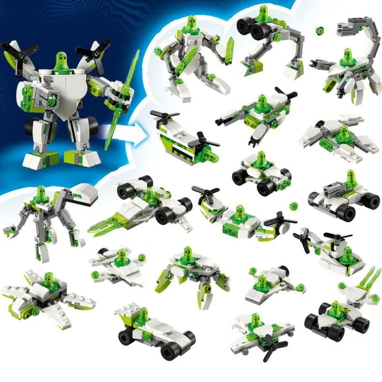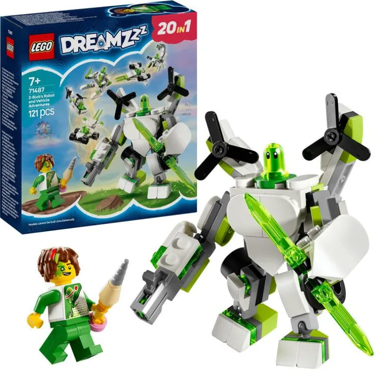 Er du klar til å slippe kreativiteten løs og hjelpe Mateo med å forvandle Z-Blob til 20 kule robot- og fartøymodeller? Opplev den gøyale drømmeverdenen med byggesettet LEGO DREAMZzz Eventyr med Z-Blobs robot og fartøy, som gir deg muligheten til å bygge en tøff Z-Blob-robotmodell og bygge ham om til et helikopter, en racerbil, robot, turbojet, skorpion og mer! Hvilken modell vil du bygge først?