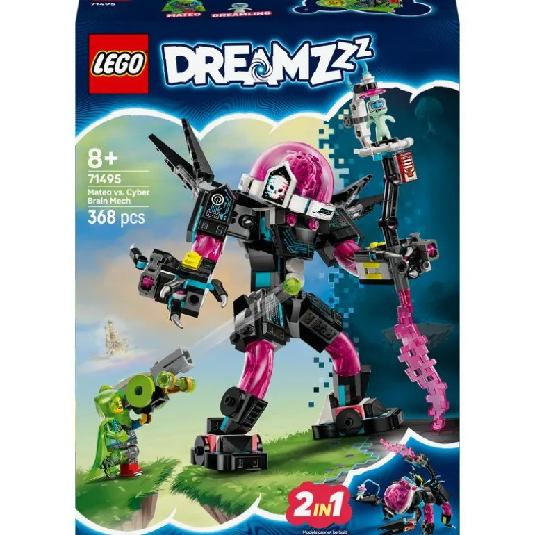 Skurken Kyberhjerne terroriserer drømmeverdenen og har fanget en uskyldig drømling! Hjelp Mateo med å redde den ved å bygge en kul kapsel og deretter drømmeskape den om til en Kyberhjerne-robotleke eller Kyberhjerne-skorpionleke med dette tøffe byggesettet. Få en gøyal byggeopplevelse, og utforsk tøffe detaljer som modulære skytere og en Mateo-minifigur.