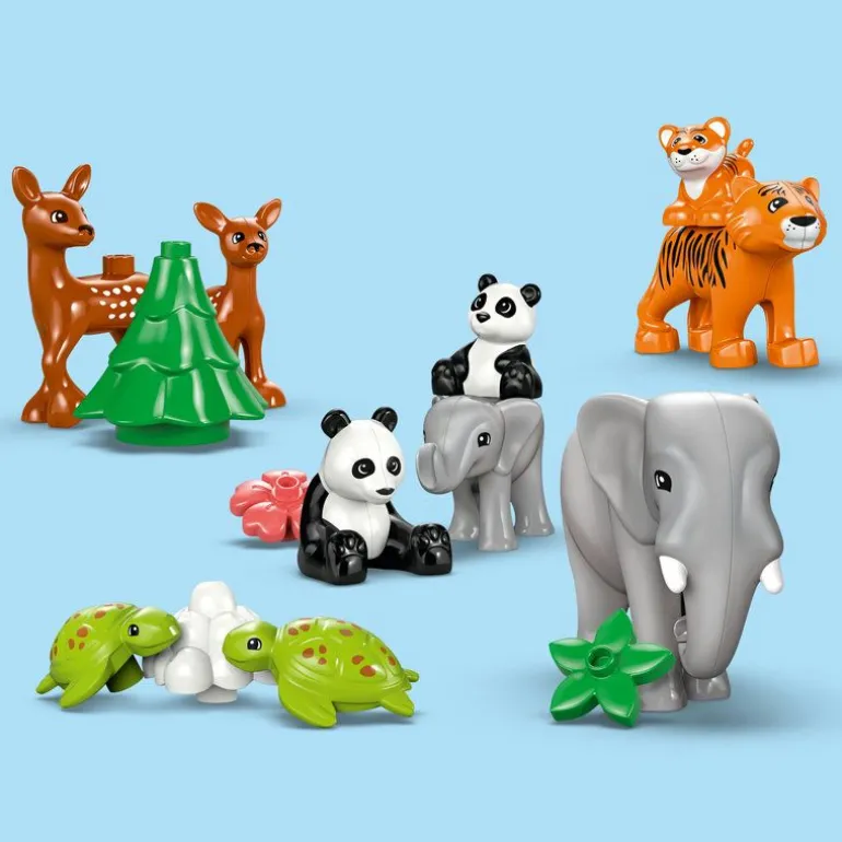 - Fantasivekkende leke med figurer av tigre, skilpadder, elefanter, rådyr og pandaer