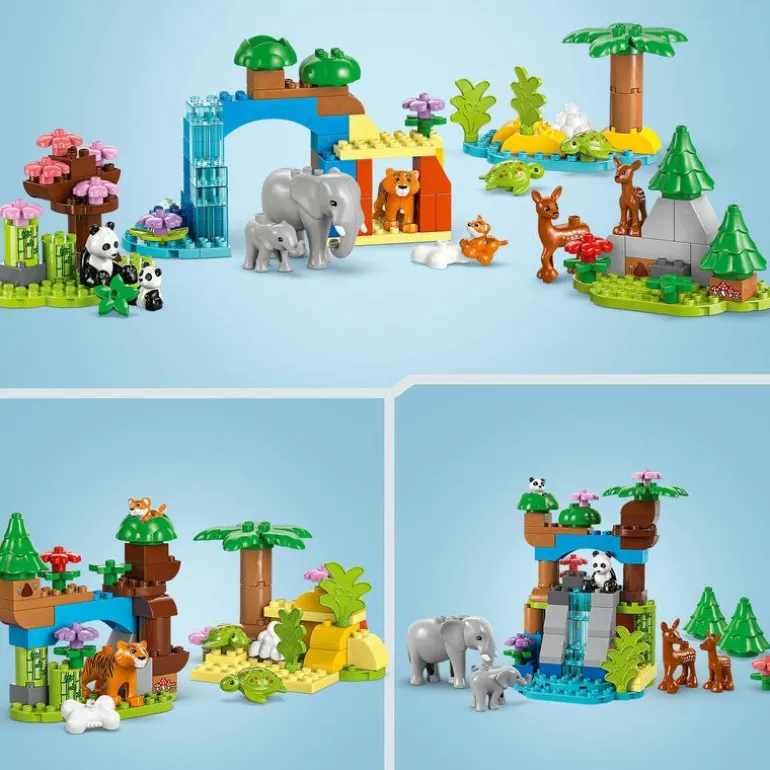 Ta med smårollingen din på en lærerik reise jorden rundt. Underveis treffer dere på pandaer, rådyr, elefanter, skilpadder og tigre med unger og får vite mer om hva de spiser og hvordan de passer på ungene sine. La barnet ditt utforske dyrenes habitater før det bygger dem om etter eget hode!