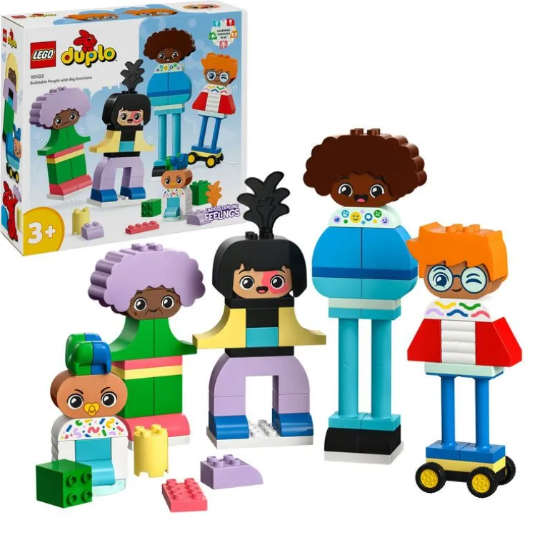 Med LEGO DUPLO Town Byggbare personer med sterke følelser kan du stimulere småbarns kreativitet og gi dem muligheten til å utforske forskjellige følelser. Barn lever i en mangfoldig verden og kan bygge og bygge om de fem figurene for å gjenskape det. Settet inkluderer fargerike klosser og deler som småbarn kan bygge spennende figurer med, og med ti uttrykksfulle ansikter kan de formidle hva de føler.