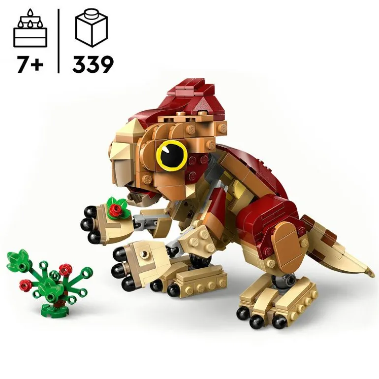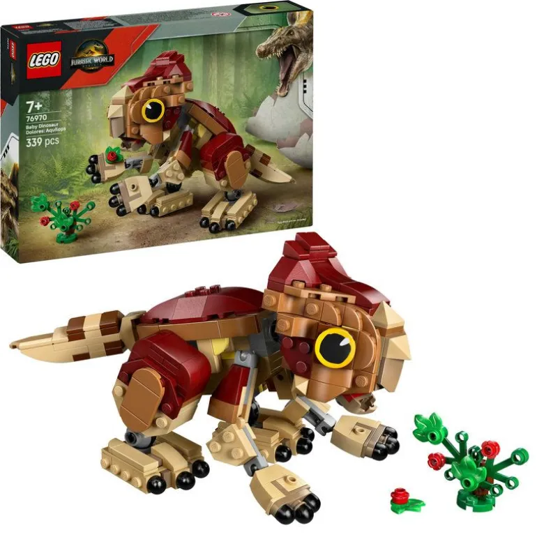 - En modell av dinosaurungen Dolores med en byggbar planteleke for jenter og gutter