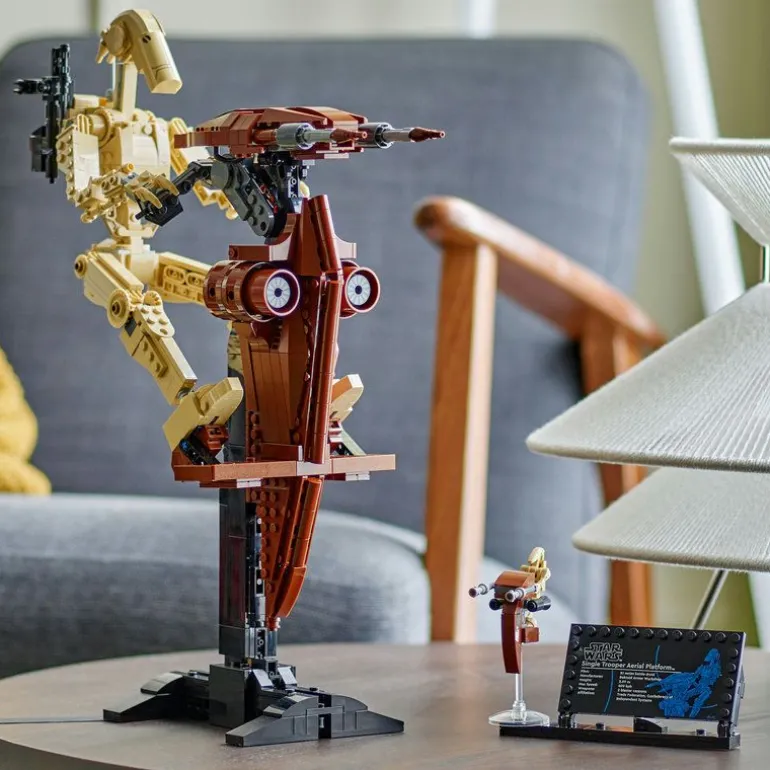 - Byggbar LEGO Star Wars utstillingsmodell av en kampdroide med STAP-speeder