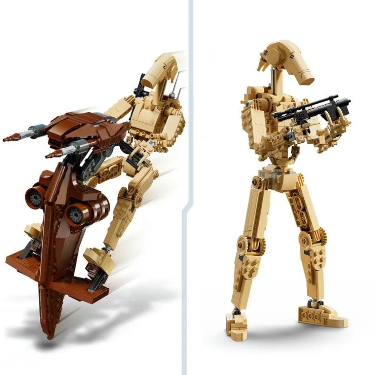 - En byggbar og bevegelig kampdroidefigur, STAP-speeder og utstillingssokkel