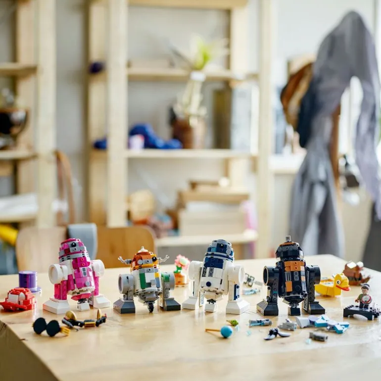 Med settet Kreativ droidebygging kan du bygge din egen R2-D2, Chopper (C1-10P), QT-KT og R5-J2! Kle ut droidene med cowboyhatt, bart, tversoversløyfe, rakettboostere og mer. Du kan til og med bytte om på bein og hoder for å skape unike, nye droider! Settet inneholder også en LEGO Star Wars minifigur av Princess Leia som ung, med droiden L0-LA59 for å markere 25-årsjubileet.