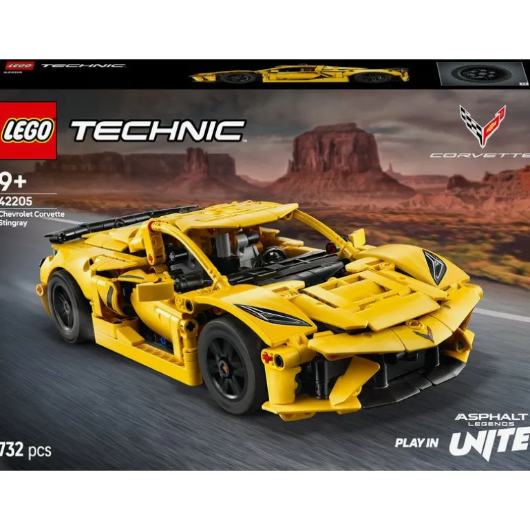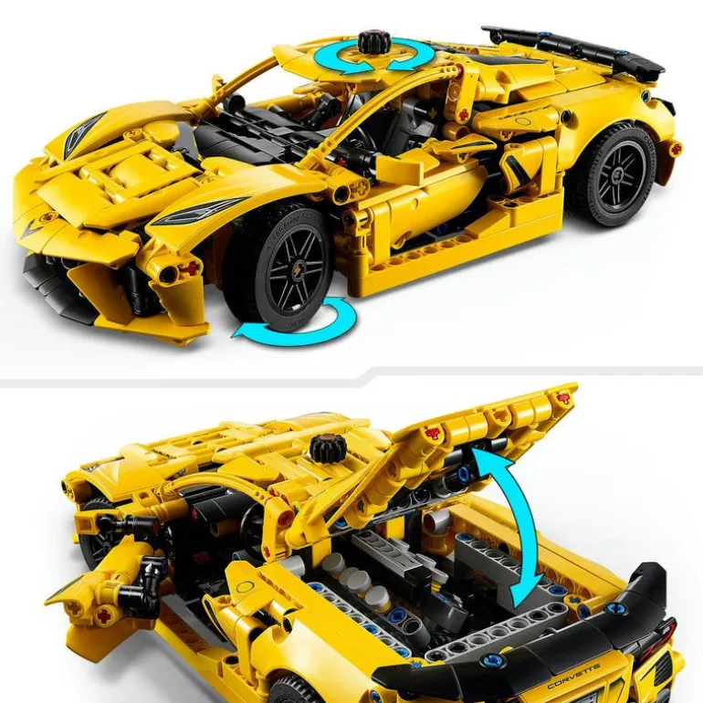 Fest sikkerhetsbeltet, og sett i gang med byggingen av LEGO Technic Chevrolet Corvette Stingray! Bygg Stingrayens realistiske detaljer før du tester bilen til det maksimale. Sjekk ut de kule fargene, og utforsk differensialen og den åttesylindrede motoren med bevegelige stempler. Åpne panseret og dørene for å beundre interiøret, og still ut modellen.