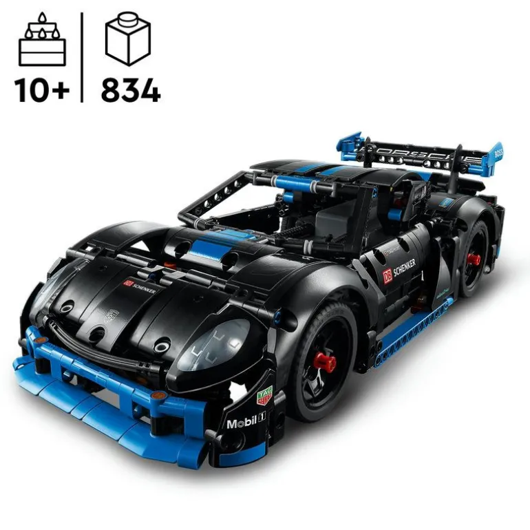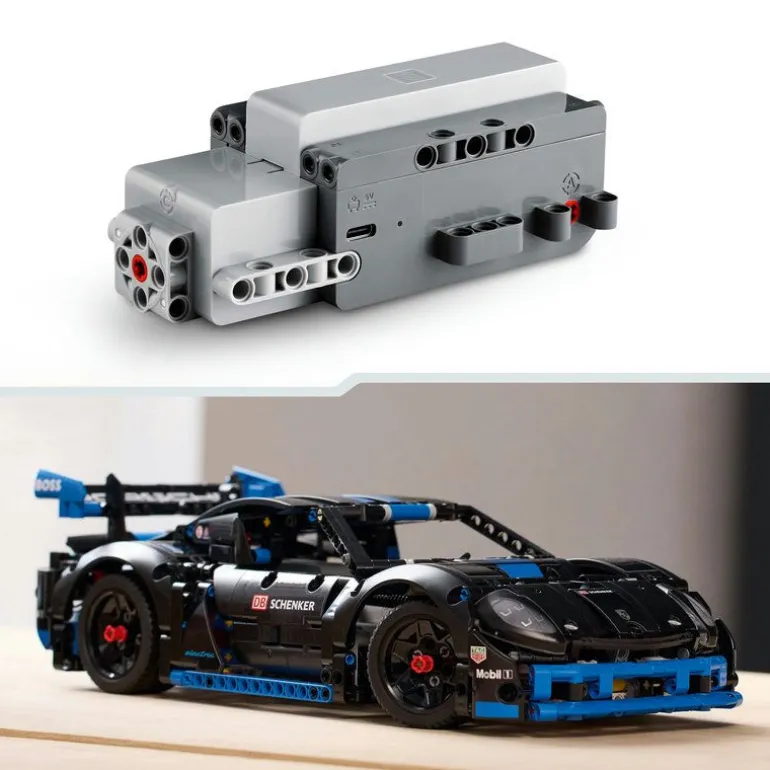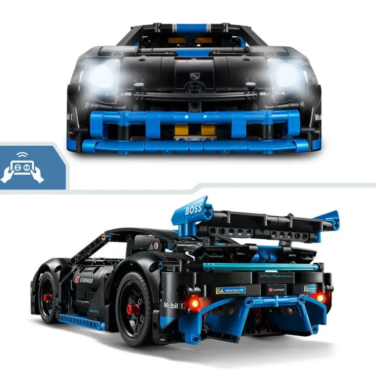 Racerbilen Porsche GT4 e-Performance ligger i teten når det gjelder elbil-innovasjon i motorsportens verden. Ha det moro mens du bygger din egen fjernstyrte versjon av det som er den raskeste bilen (per august 2024) i LEGO Technic CONTROL+-serien. Kjør forover og bakover, og se hva den kraftige bilen kan gjøre. Lys opp med for- og baklykter, og åpne dørene for å beundre interiøret.
