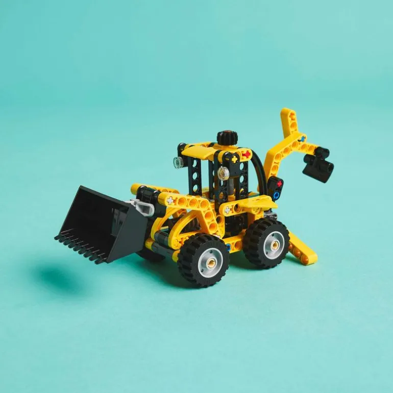 Med denne robuste traktorgraveren kan du håndtere alle byggeoppgaver! Vri på knotten for å heve og senke frontskuffen. Manøvrer graveren på plass, og senk støttebeina for ekstra støtte. Bruk den bakmonterte grabben for å fullføre neste arbeidsoppgave. Med traktorgraveren er det gøy å jobbe!