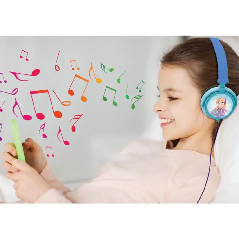 Lettvektet hodetelefoner med flott Frozen motiv på. Hodetelefonene kan justeres. Hodetelefonene har en jakk kabel som gjør at det kan kobles til alle musikkspillere med en jakk utgang. Hodetelefonene er sikret for barn slik at lyden har en limit på 85db.
