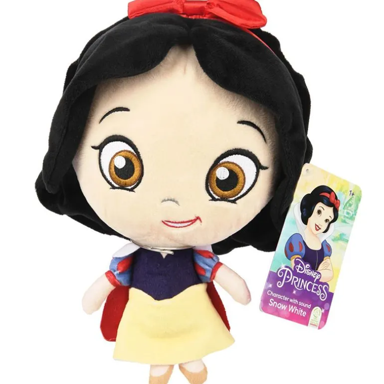 Kos deg med favoritt Disney-karakteren din, Snøhvit. Denne bedårende Disney prinsesse plysjbamsen er perfekt for ethvert eventyr, leketid eller søvn! For å vekke Disney-prinsessen din til live, trykk ganske enkelt på trykk her-knappen for å lytte til Snøhvit-lydeffekter, som garantert vil underholde og glede de små.