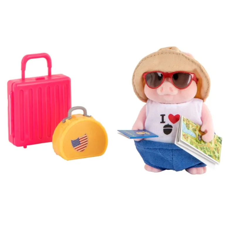 Pakk bagasjen og gjør deg klar for et eventyr med Li’l Woodzeez reisesett! Dette alt-i-ett-lekesettet kommer med Toby Curlicue, en søt grisekarakter som vil være reisevennen din! Han er klar for en stor tur, med miniatyrkoffertene, kameraet, kartet og billetten. Han har også et kult antrekk, inkludert en lue og solbriller som du kan mikse og matche med andre Li’l Woodzeez! Det er mye snacks til reisen, samt nakkepute og øyemaske. Klar til å gå? Ikke glem passet ditt!