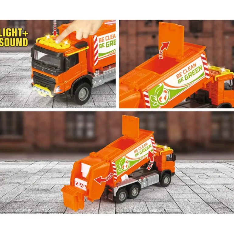 Majorette Volvo FMX søppelbil: hold gatene rene! Søppelhenting er en viktig tjeneste som gjør livene våre enklere. Denne godt detaljerte søppelbilen fra Majorette er et må-ha for enhver bilsamler. Kjøretøyet har mange morsomme og brukervennlige funksjoner, inkludert to forskjellige lydeffekter, frontlykter, tåkelys og to oransje varsellys som kan aktiveres ved å trykke på en knapp.