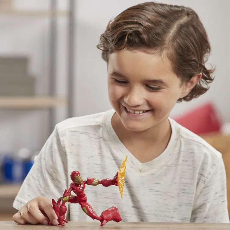 Med Bend and Flex figurene kan du gjennskape dine favoritt scener fra Disney Marvel filmene på en helt ny måte. De bøyelige figurene kommer med fleksible armer og ben som du kan justere og bevege på. Når Iron Man går opp mot sine fiender er det ingenting som kan bøye han ut av form – eller er det? Med den super bøyelige figuren kan du få Iron Man til å utføre umulige spark, baklengs slag, og stilige posseringer med tilbehøret.