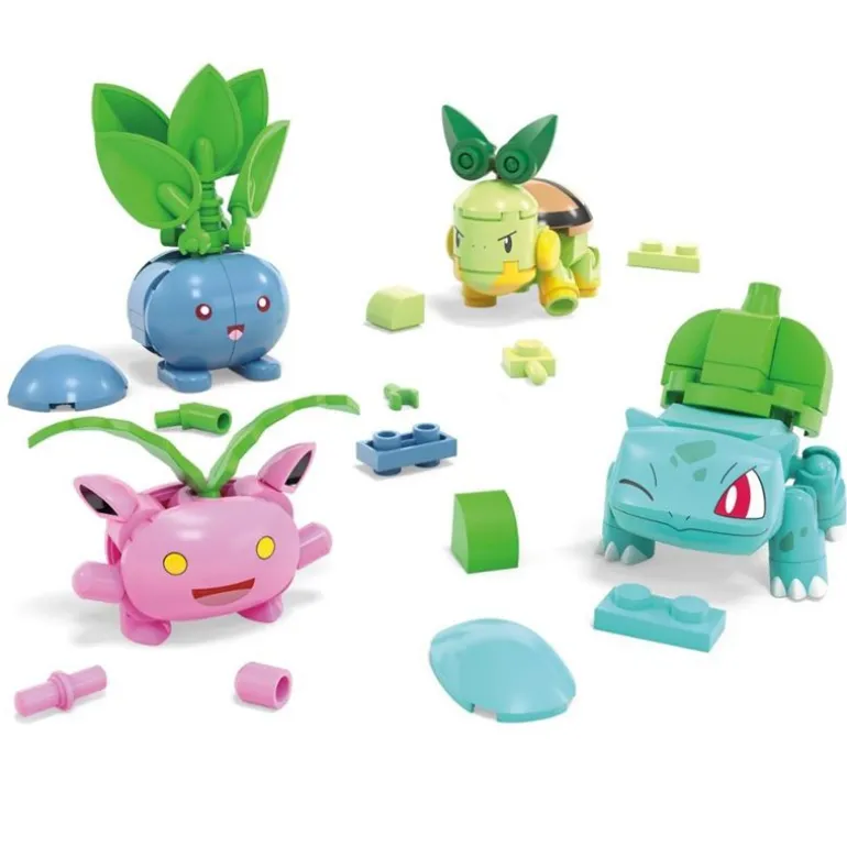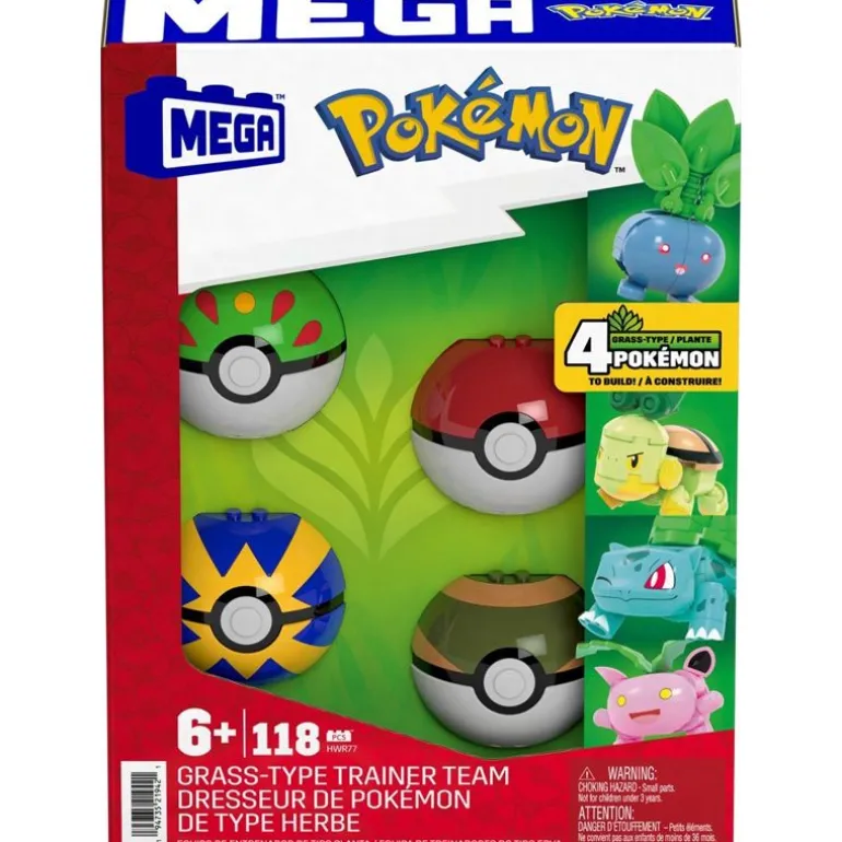Alle fans av gresstype Pokémon – det er på tide å blomstre! Bygg ditt helt eget lag av gresstype-Pokémoner, inkludert kjente ansikter som Bulbasaur, Turtwig, Hoppip og Oddish. Sett dem i forskjellige positurer og vis dem frem på de fire pokéballene med knotter på toppen. Delene kan brukes med andre MEGA-byggesett for enda mer Pokémon-moro!