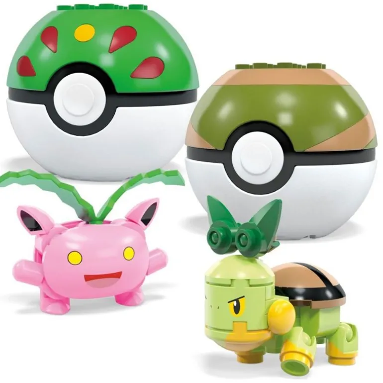 - Inkluderer 4 byggbare Pokémons av gresstype med 4 poké-baller