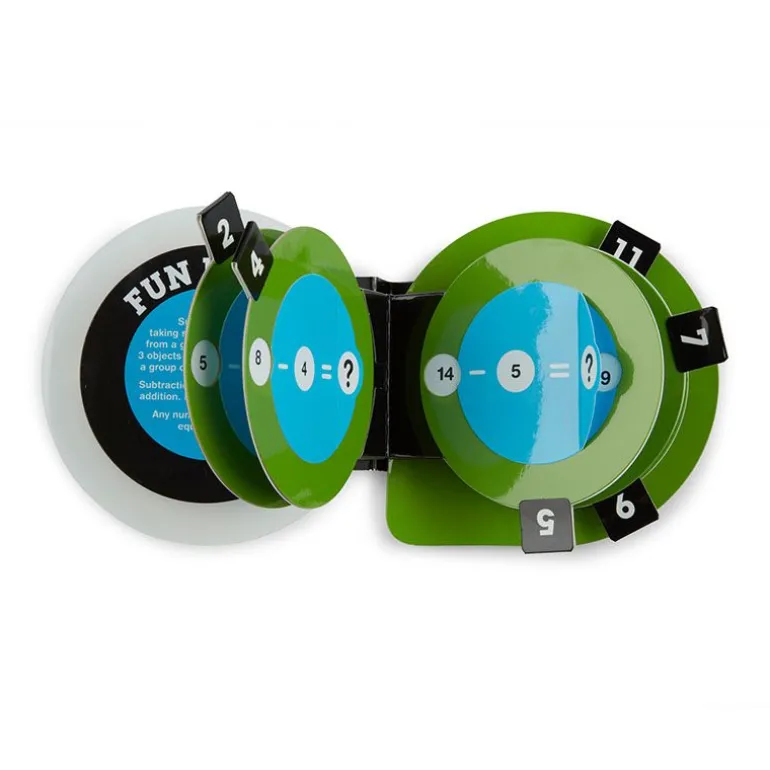 Drei hjulet for et matematisk problem, løs det, løft deretter klaffene for å sjekke svaret! Math Gear inneholder også morsomme fakta om tall og matematikk. Denne boken (også tilgjengelig for tillegg, multiplikasjon og divisjon), gjør det morsomt og enkelt for barn fra 4 år og eldre å lære og praktisere subtraksjonsfakta, hvor som helst og når som helst!