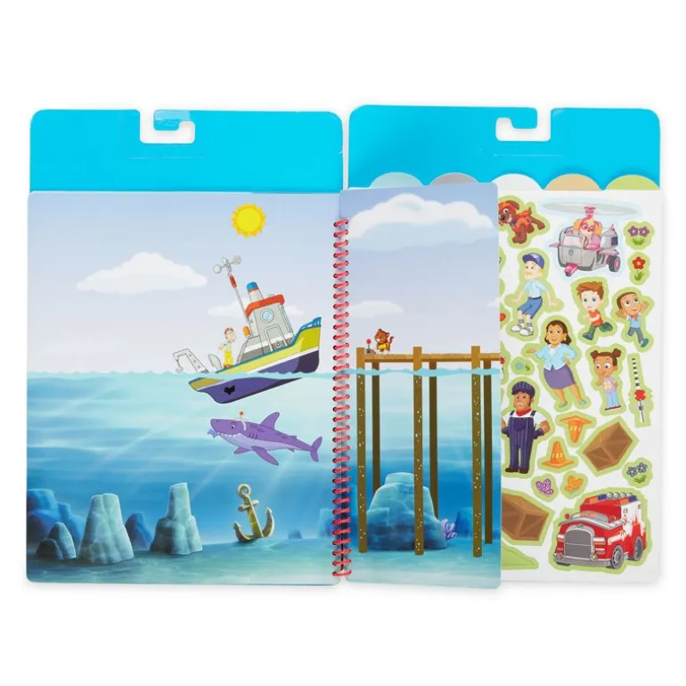 - Fortell utallige PAW Patrol -historier med gjenbrukbare klistremerker på 5 scener som forvandles med en klaff.