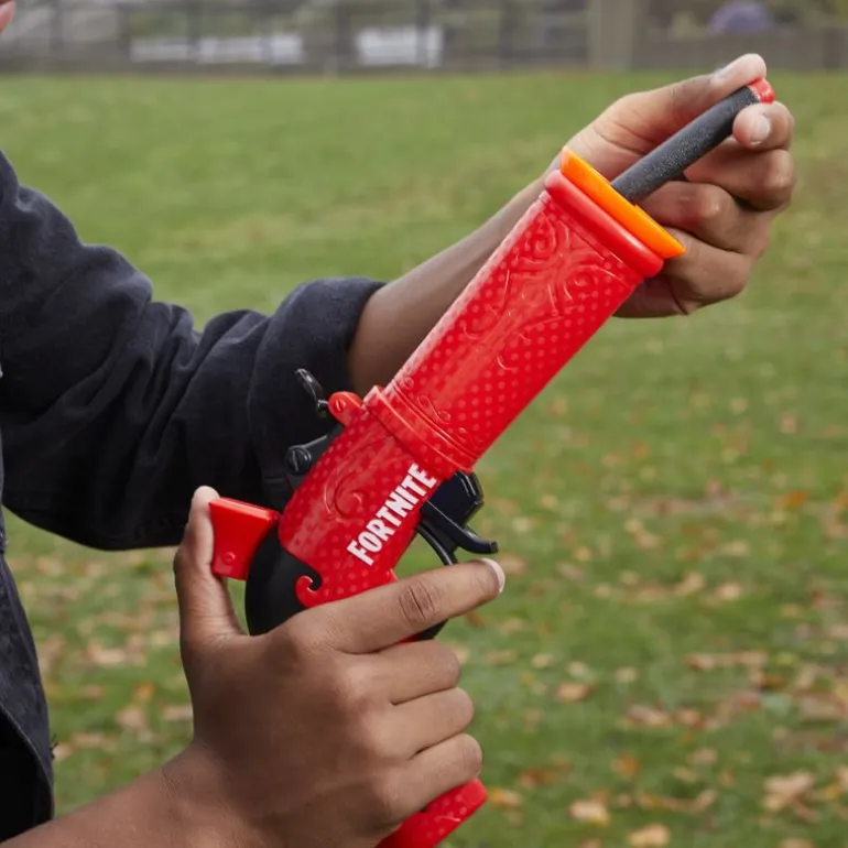 Begge Nerf blastere er enkle å bruke og klare til bruk i 3 enkle trinn. Frontlast 1 pil, fyll på og trekk i avtrekkeren. Inkluderer 6 offisielle Elite-skum Nerf-darter, som gir deg ekstra piler for omlasting. Det er en flott Fortnite-gave for utendørs lek. Briller anbefales (ikke inkludert). Ingen batterier kreves.