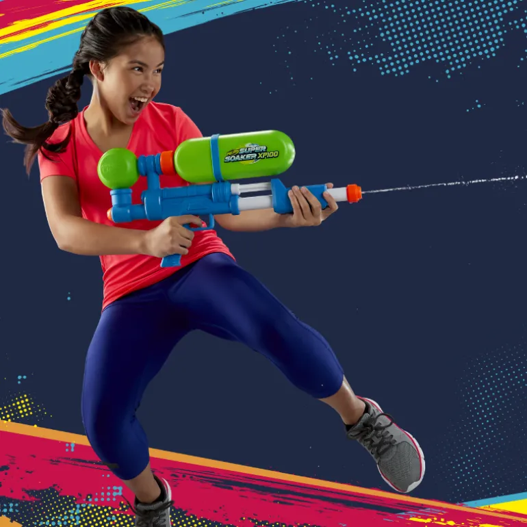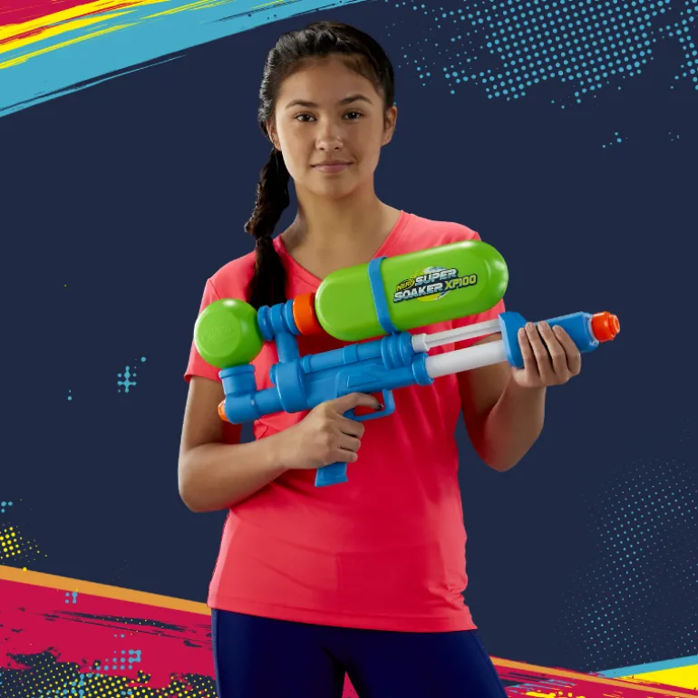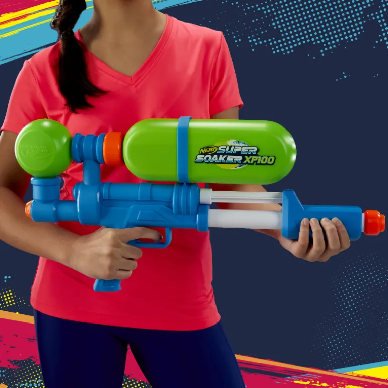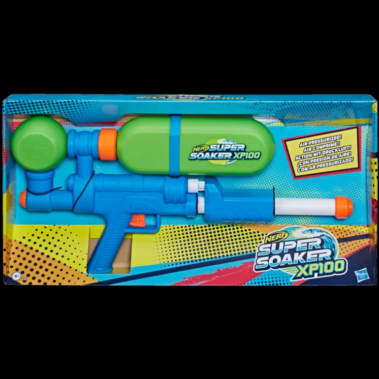 Opplev den vanndrenende moroa som startet det hele! Denne Nerf Super Soaker XP100 vann-blasteren har den originale mekanismen for lufttrykk under vann, lyse retrofarger og klassisk styling – det er en splashtastic eksplosjon fra fortiden for dagens vannkrigere. Fyll den avtakbare tanken, pump håndtaket for å lage trykk i tanken, og trekk deretter i avtrekkeren for å slippe løs en kontinuerlig, luftdrevet stråle vann. Nyt moroa med den luftpressede kraften fra Nerf Super Soaker XP100 blaster!