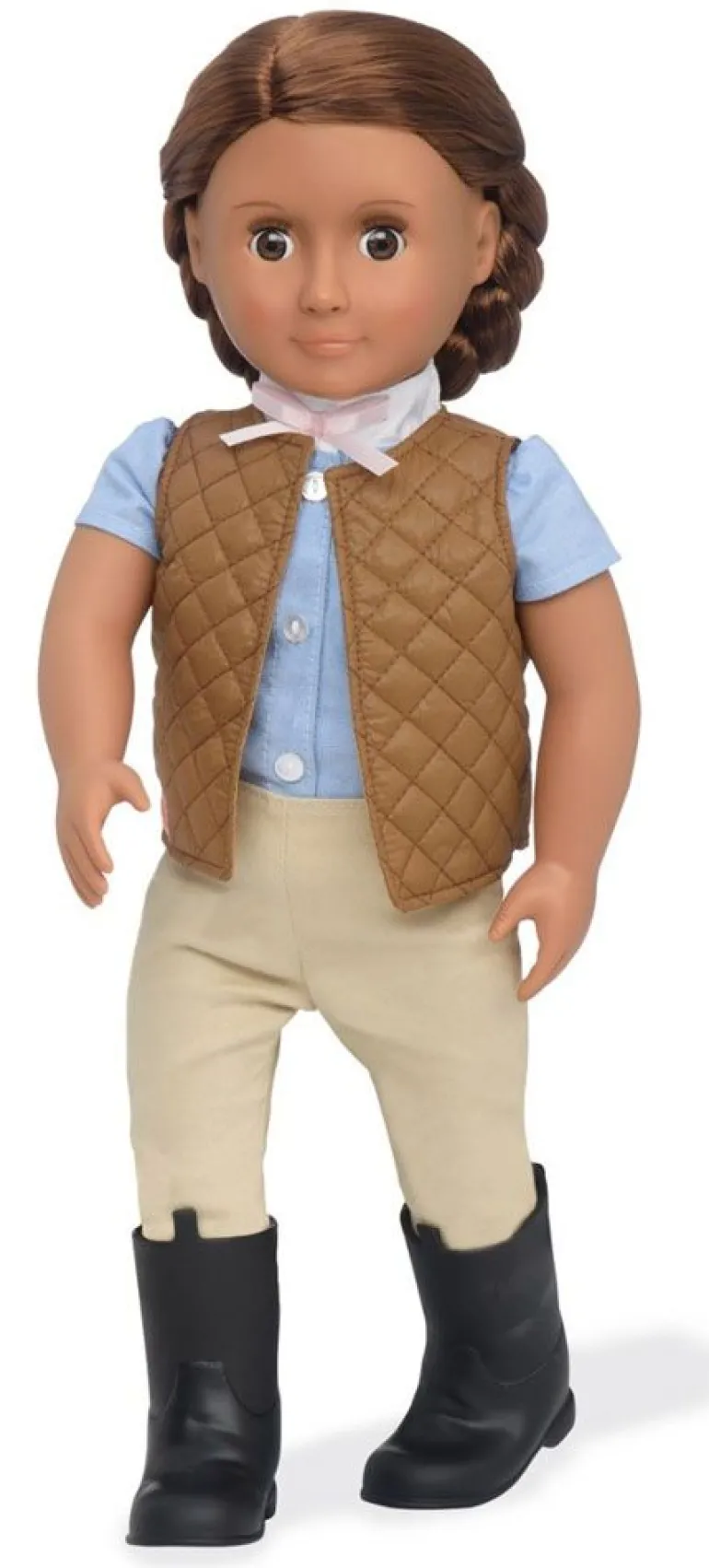 Møt Catarina! En av de utrolig flotte Our Generation dukkene. Catarina elsker å ri, og er kledd for en tur på hesteryggen. Ridejenter vil elske å hoppe, galoppere, og ri inn i solnedgangen med Our Generation Riding Doll – Catarina, den vakkre 46 cm dukken med varme, brune øyne og langt, rett, gyllenbrunt hår. Alle Our Generation dukkene er 46 cm høye, så alle klærne og tilbehøret passer til alle dukkene. Our Generation dukker og tilbehør er laget av materialer som er nøye valgt. I tillegg er all emballasje miljøvennlig. Hest selges seperat.