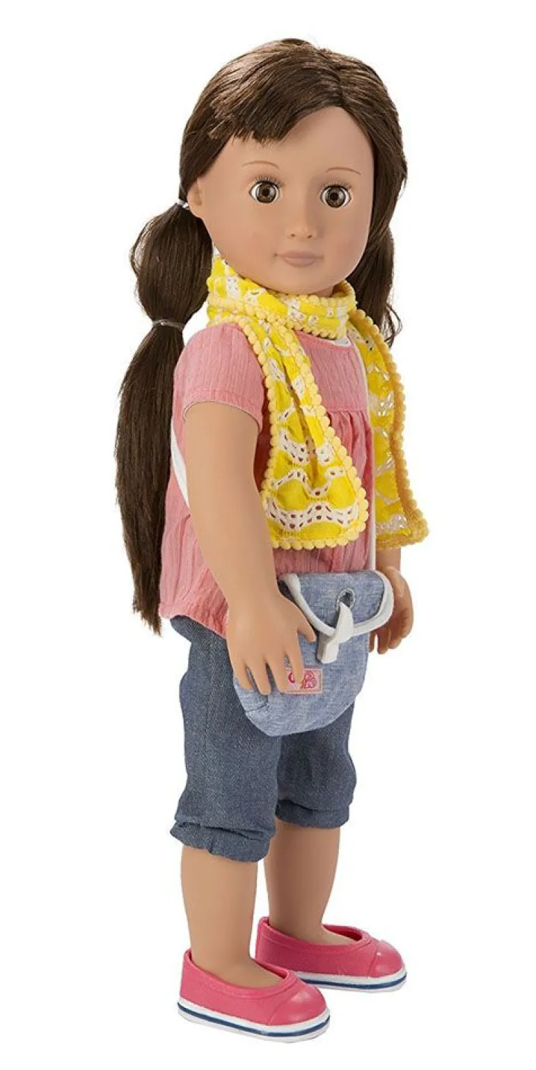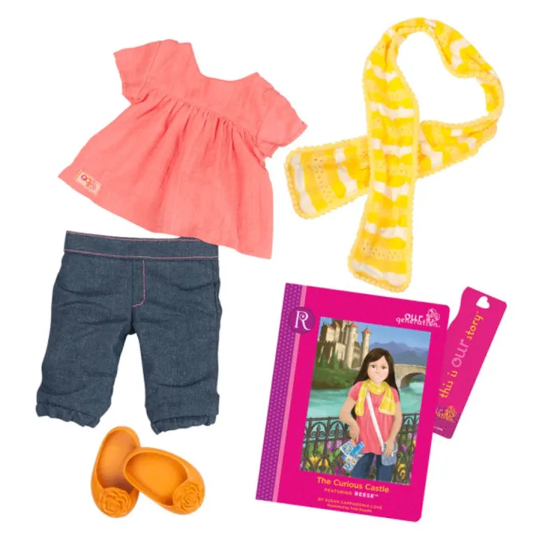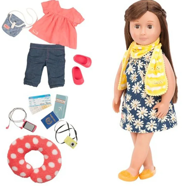 Møt Reese! En av de utrolig flotte Our Generation dukkene. Reese elsker å reise, og med i vesken har hun alt hun trenger til turen. Pass, kamera, boarding pass, mobil og mye mer. Alle Our Generation dukkene er 46 cm høye, så alle klærne og tilbehøret passer til alle dukkene. Our Generation dukker og tilbehør er laget av materialer som er nøye valgt. I tillegg er all emballasje miljøvennlig. Passer fra 3 år+