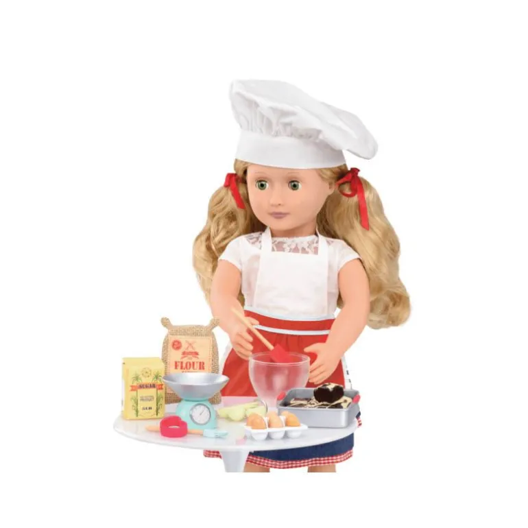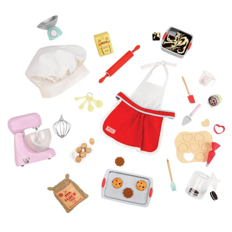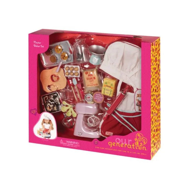 Gjennom fantasifull lek kan barna utforske kjøkkenets gleder og samtidig utvikle finmotoriske ferdigheter. Lekesettet inspirerer til kreativitet og oppmuntrer til rollelek der barnet kan lage sine egne «oppskrifter», late som de er en mesterbaker, og servere herlige bakverk til familie og venner. Dette bakesettet er den perfekte tilleggsleken for ethvert barn som elsker matlaging og Our Generation-dukkene!