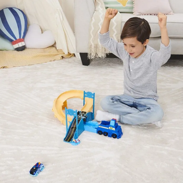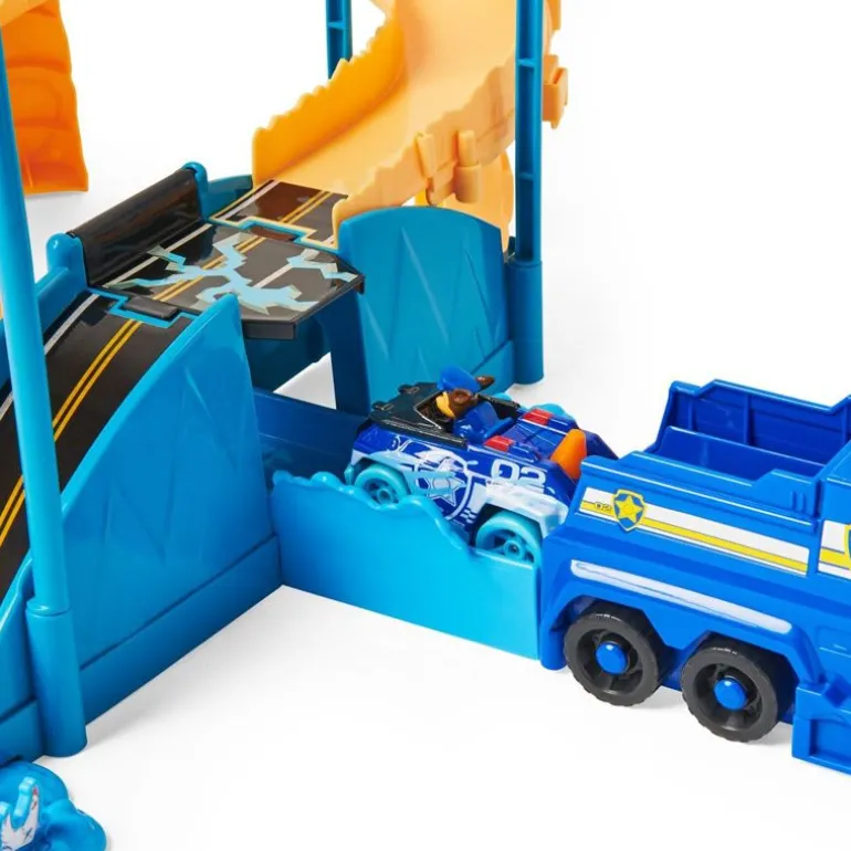 Reparer Adventure Bay broen og send Chase av sted til Chickalettas redning med Paw Patrol True Metal Chase Rescue Settet! Dette spennende bilbanesettet fungerer med Paw Patrol 1: 55-skala True Metal-kjøretøyene (hver selges separat) og inkluderer et eksklusivt Chase-støpt kjøretøy med blå hjul og stilige detaljer. Sett det eksklusive kjøretøyet ditt i launcheren, og trykk for å sende Chase til handling – Chase’s kjøretøy suser rundt banen og reparerer broen! Når Chases kjøretøy når bunnen av broen, vipper en livbøye på Chickaletta, og redder henne fra vannet! For å tilbakestille, er det bare å løfte livbøyen opp igjen, skyve broen nedover og løp til unnsetning igjen og igjen! Spill ut dine egne spennende redninger i Adventure Bay med Paw Patrol True Metal Chase Rescue Settet!
