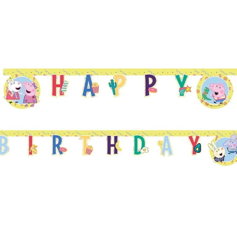 Dekorer til bursdagsselskapet med den stilige ‘Happy Birthday’ banneren med Peppa Gris motiv! Banneren måler 2 meter i lengden og kan enkelt festes med snorene eller teip.
