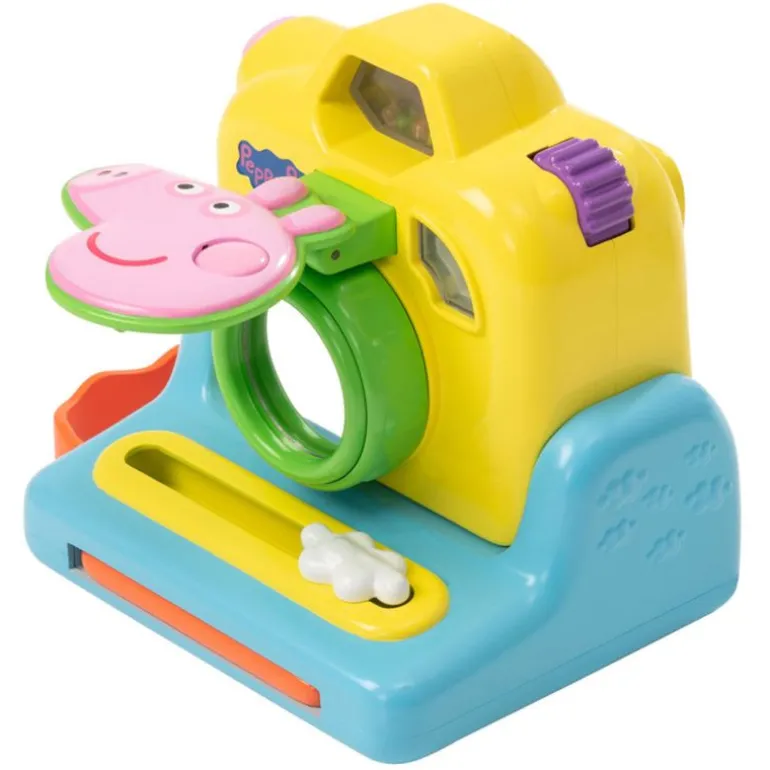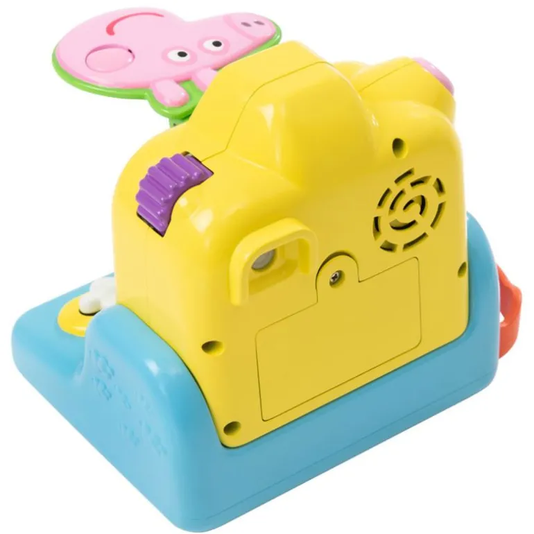 La fotografering bli til lek med Peppa Gris. Løft Peppa-kameralinsen for å høre Peppa-temamelodien. Ta så den perfekte selfien. Trykk på den snuteformede lukkerknappen for å lage et bilde. Hør Peppa grynte når bildet skyves inn igjen. Klikkerspinner skaper en fargerik, skiftende verden gjennom søkeren. Inkluderer mykt håndtak som er lett å gripe, samt rangleperler.