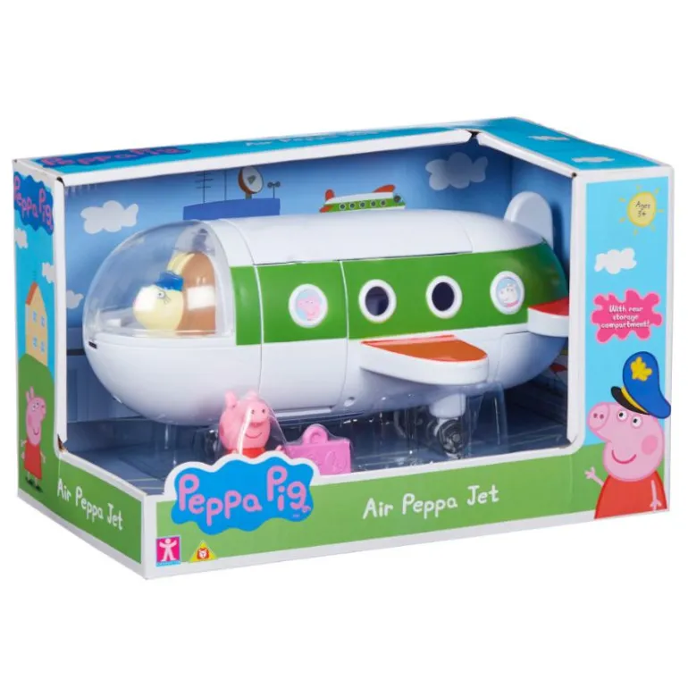 Ta av i Peppa’s frigående fly med Frøken Kanin! Inkluderer Peppa-figur med bevegelige ledd og en koffert. Åpne opp dørene, senk trappen, og åpne deretter bagasjerommet for å laste kofferten inn i flyet! Flipp-over Frøken Kanin-figuren for å gi plass til Peppa hvis hun skal fly flyet. Det er plass til Peppa og vennene hennes inne i flyet, slik at de kan dra på spennende reiser sammen for å oppleve nye ting!