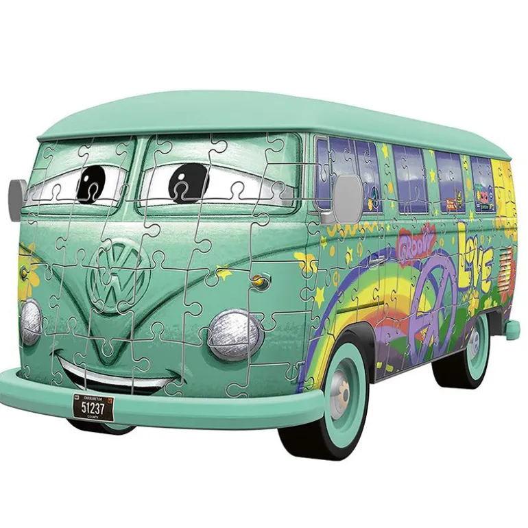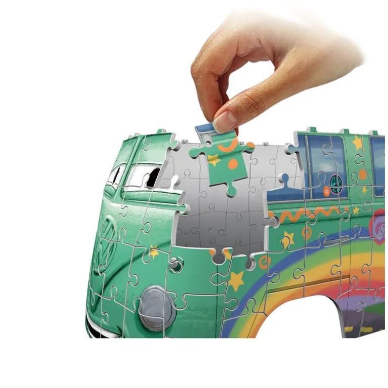 Stilig 3D puslespill fra Ravensburger av en tøff Volkswagen T1. Brikkene kommer med nummer på baksiden, pusle i stigende rekkefølge for et stilig kjøretøy i 3D.