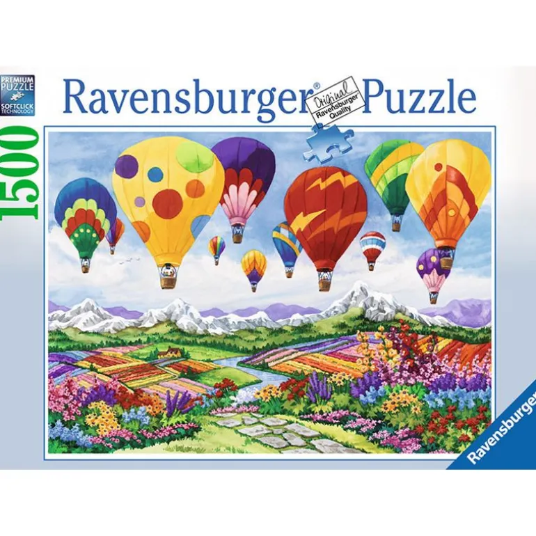 Et fargerikt og flott puslespill fra Ravensburger med varmluftsballonger som hovedmotiv. Puslespillet har 1500 biter, og måler ferdigpuslet 60cm x 80 cm.