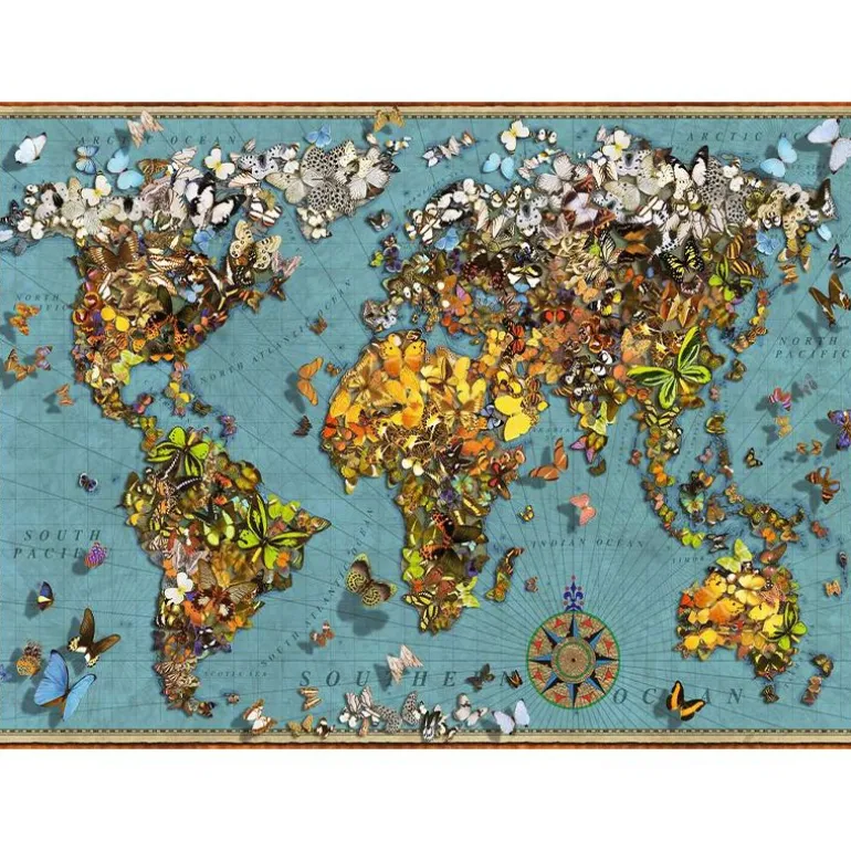 Flott puslespill fra kvalitetsmerket Ravensburger med motiv av verdenskart dekket av sommerfugler. Sommerfuglene kommer i mange forskjellige flotte farger.