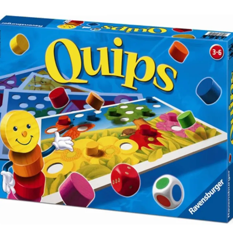 I spillet Quips kan barna ha det gøy mens de også lærer om farger og tall. Spillerne må trekke riktig antall fargede trebrikker fra posen, og fargeterningen viser om de får legge brikkene på spillbrettet. Vinneren er den som først fyller ut sitt spillbrett med brikker i riktig farge.