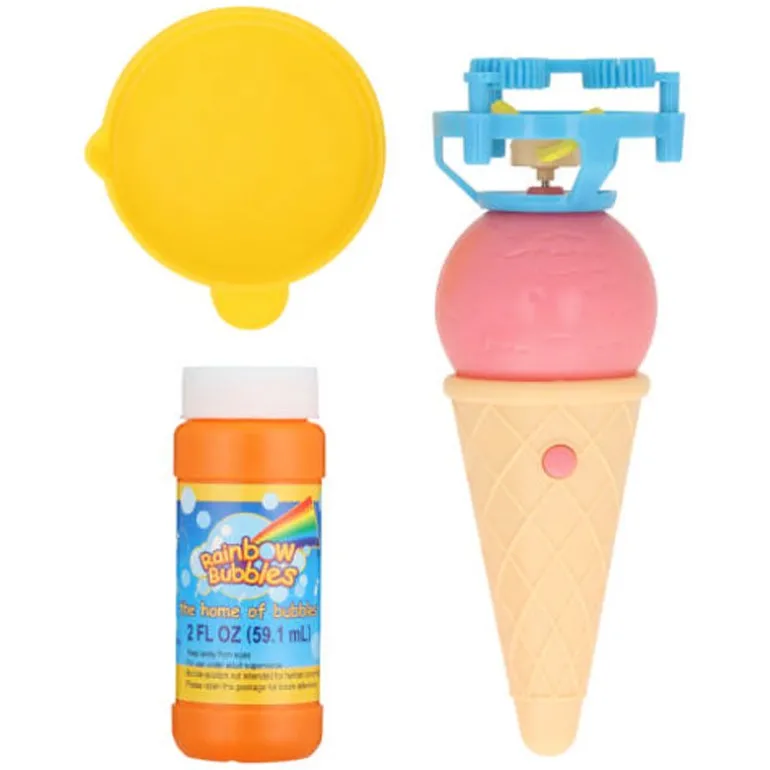 Stilig såpeboblemaskin formet som en kuleis. Hell såpeboble middelet i det lille fatet, dypp toppen av maskinen oppi og trykk på den blå knappen for å starte og stoppe maskinen.Kuleisen kommer i tre forskjellige farger og blir tilfeldig plukket ut.Inneholder såpeboblemaskin, såpeboble middel (59 ml), og lite fat.Bruker 1 AA batteri (ikke inkludert).Passer fra 3 år+