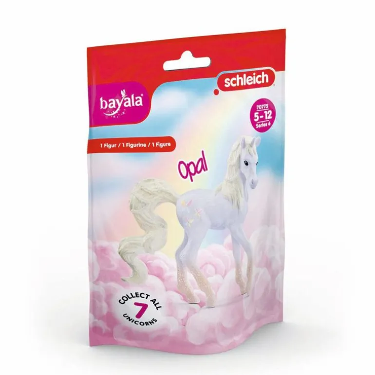 Hvorfor har den søte samleenhjørningen Opal pyntet seg så fint? Det er en hel stjernehimmel av glitter på de gule, kontrastfylte beina og den lysegule halen. Manen er også dekket av glitterstøv. Kronen på verket er den forseggjorte frisyren i manen og halen. Han gjør seg sikkert klar til å møte de andre krystallenhjørningene slik at de kan galoppere gjennom BAYALA. Med en flott samleplakat til rommet ditt kan du beundre det vakre føllet og vennene hans i ro og mak.