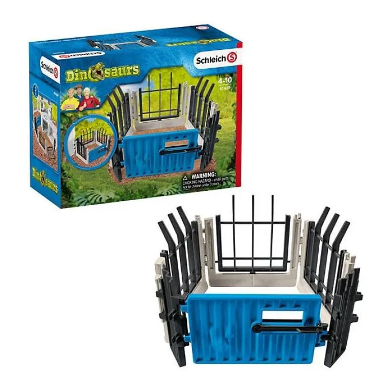 Med de spesielt utviklede gjerdedelene i gjerdesettet fra schleich®® DINOSAURS er det mulig å feste gjerdene direkte til den store dinosaur-forskningsstasjonen (art.nr.: 41462). På denne måten kan du utvide innhegningen til dinosaurene slik at det blir plass til flere dyr.