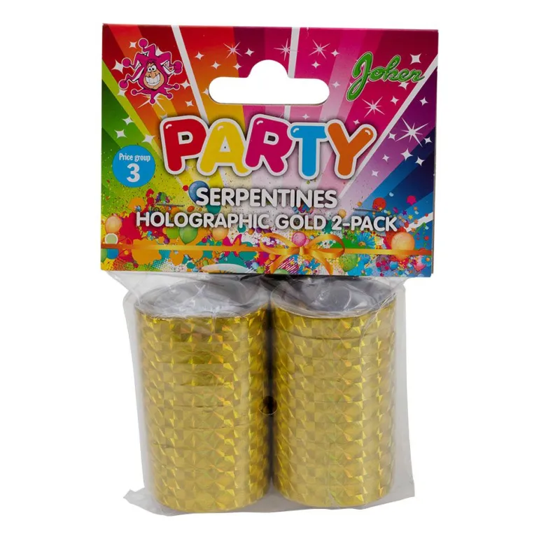Pynt til fest med disse flotte serpertinerne i gull. En pakke inneholder 2 ruller med serpentinere i papir som igjen kan deles i flere strimler.