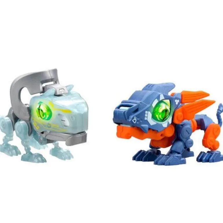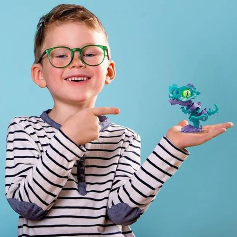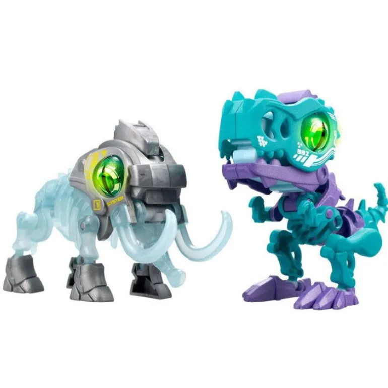 Når de er satt sammen, kommer de til liv med et trykk på en knapp! De åpner munnen og lager en lyd mens de spektakulære øynene deres lyser grønne! Rist dem for enda flere lydeffekter. Samle alle 6 forskjellige Dino-robotene som finnes i 4 forskjellige Biopods Duopalkker!