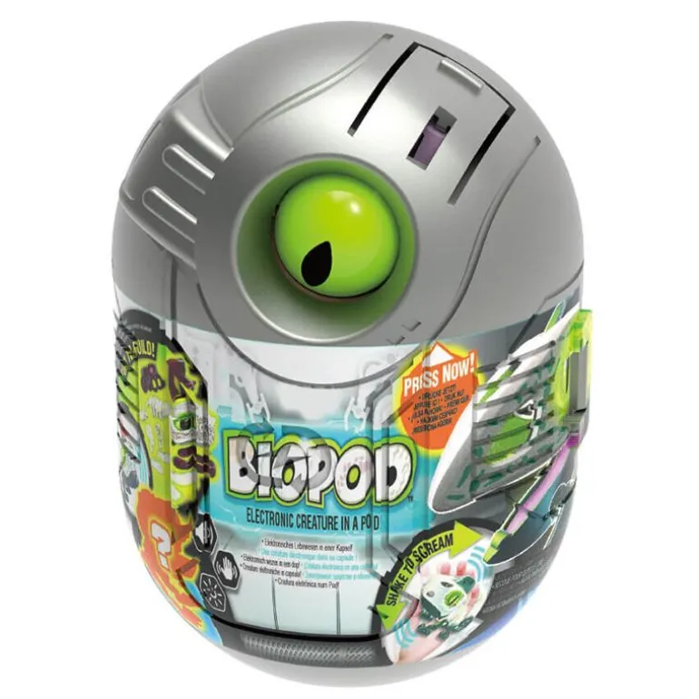 Inspirer barnas fantasi med disse sci-fi skaporningene som er skapt i laboratoriet. Hver skapning med en pod, og klar for å bli oppdaget av barna. Lag dine egne elektroniske skapninger med 10-12 forskjellige dele. Biopod fra Silverlit har innebygd sensor og lager lyd om du rister på den. Trykk på knappen og se øynene lyse opp. Figurerene kommer assortert og det er ikke mulig å se hvilke figurer som er i pakken før den er åpnet.