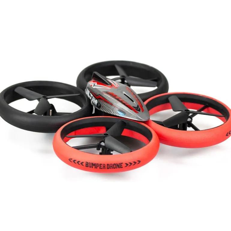 En helt ny og innovativ 3-kanals 2.4GHz drone med Flybotics ikoniske støtringer som beskytter mot støt, slik at du kan sprette mot vegger uten skader!